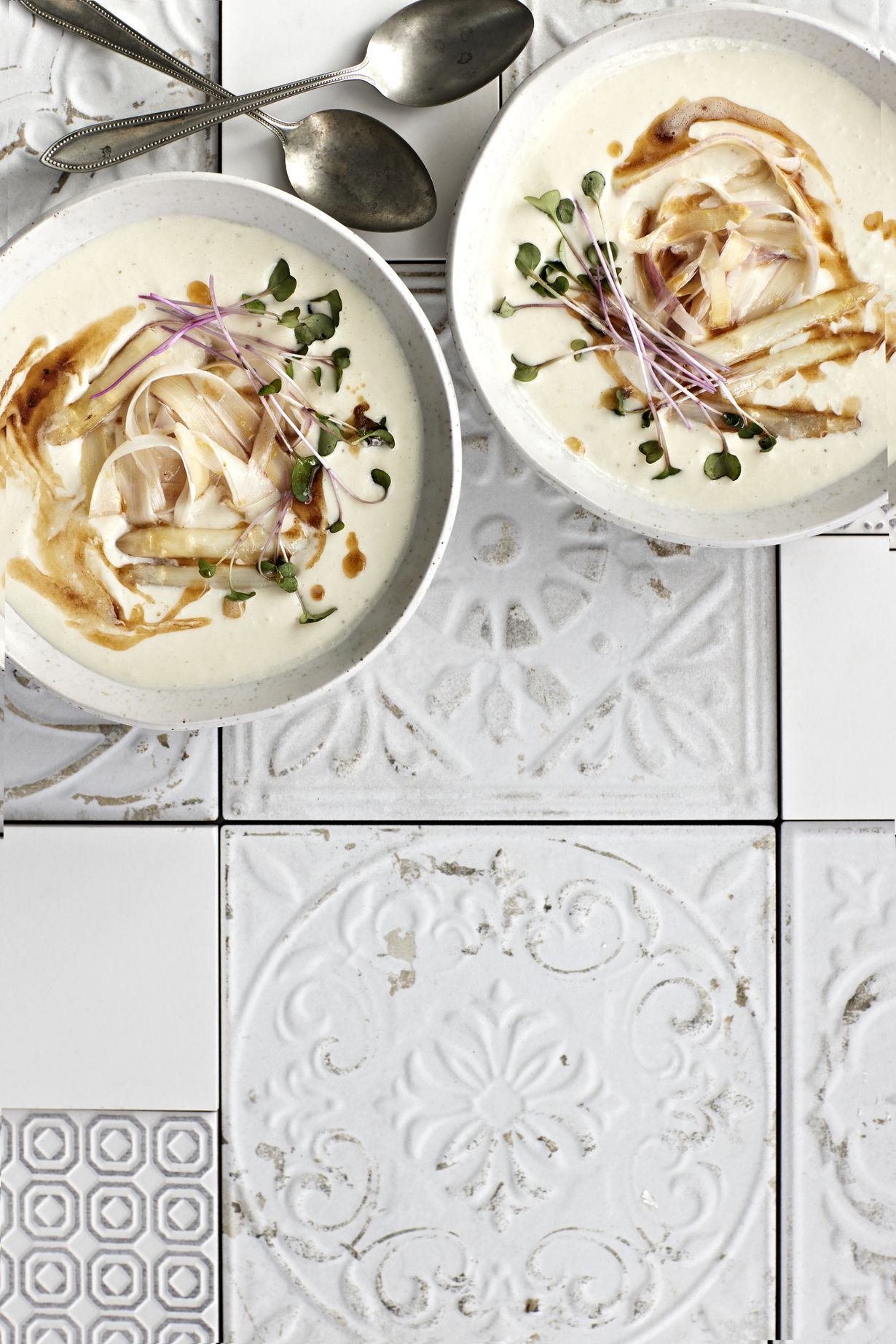 Kaikki maut talteen! Hyödynnä keiton liemessä myös parsojen kuoret. Elegantin ja kermaisen keiton maustavat sitruuna ja ruskistettu voi.