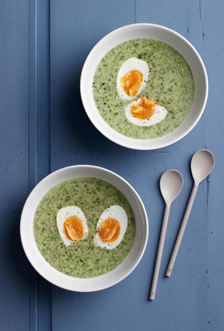 - Kiehauta vesi kattilassa. Lisää liemikuutio ja kohmeinen pinaatti. Hauduta 10 minuuttia.