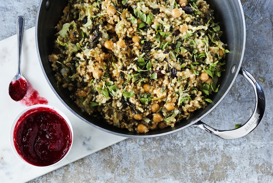Tämä vegaaninen versio kaalilaatikosta valmistuu kattilassa jopa 25 minuutissa. Maukas makuyhdistelmä syntyy kikherneistä, kaurarouheesta ja kahdesta eri kaalista.
