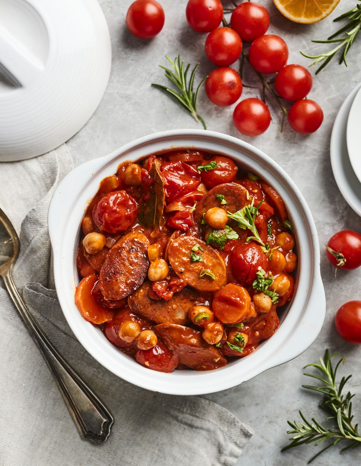 Vegaanisesta chorizosta tehty pata käy moneen ruokavalioon. Mausteita kannattaa lisätä uskaliaasti, sillä vegaaninen chorizo ei ole aivan yhtä mausteista kuin lihaisa verrokkinsa.
