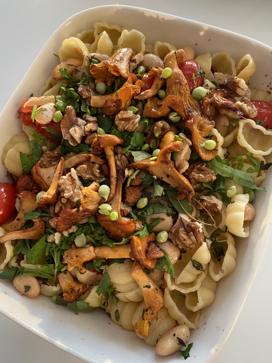 Tämä pasta on taivaallisen herkullista, monipuolista ja terveellistä ruokaa. Valkopavut tuovat ruokaisuutta ja mikä voisi olla sen parempaa kuin voissa paistetut kantarellit👌🏻