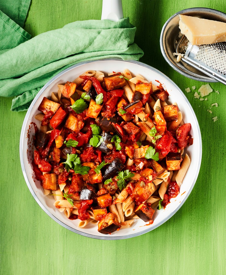 Mehevä klassikkopasta Sisiliasta jättää sopivan kevyen olon.