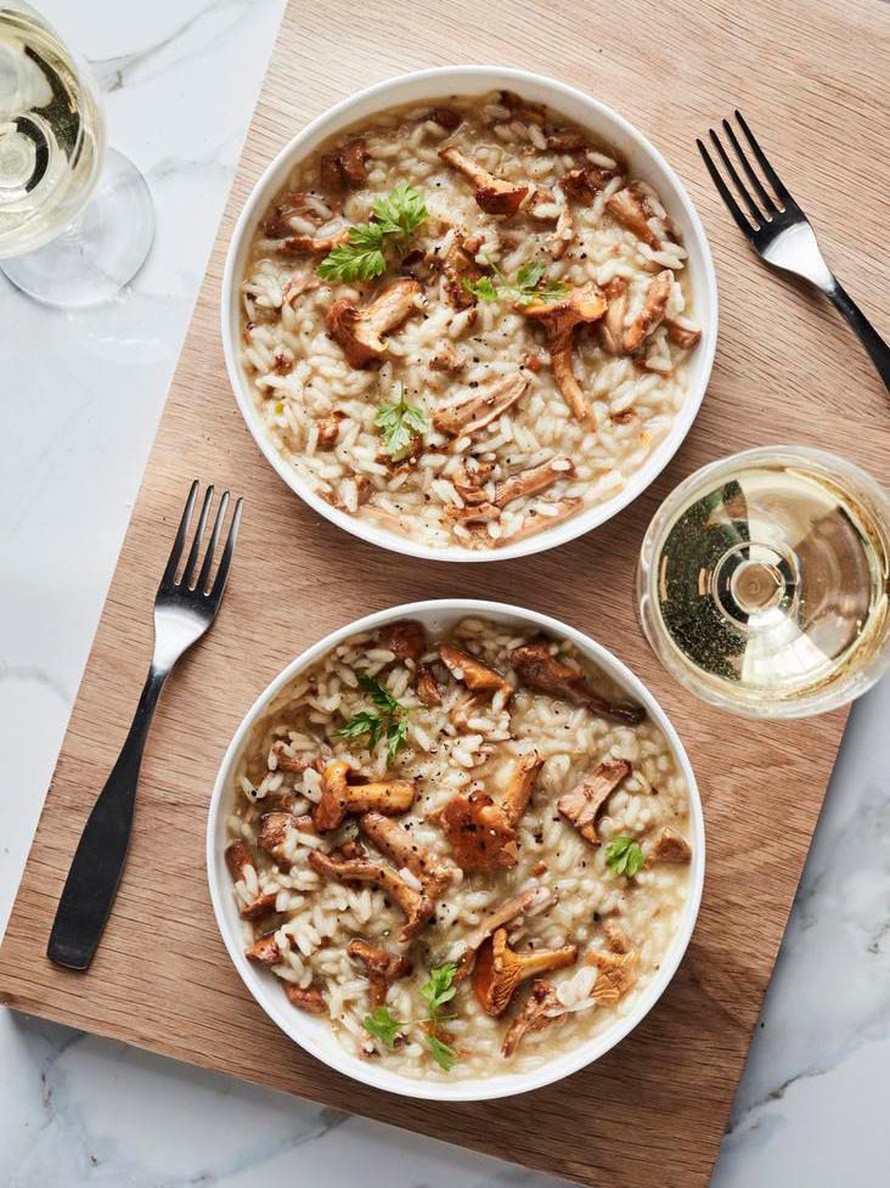 Simppeli sienirisotto päästää hienostuneen kantarellin maun pääosaan. Sienien puhdistuksen jälkeen isoimmat paloitellaan, mutta pienet kantarellit voi jättää kokonaisiksi. Kun sienistä on kuumalla pannulla irronnut suurin osa nesteestä, jatkuu risoton valmistus tavallisen kaavan mukaan. Pannulla kuullotetaan sipulit sekä riisit, annetaan viinin kiehahtaa ja lisätään lientä pikkuhiljaa koko ajan sekoitellen.