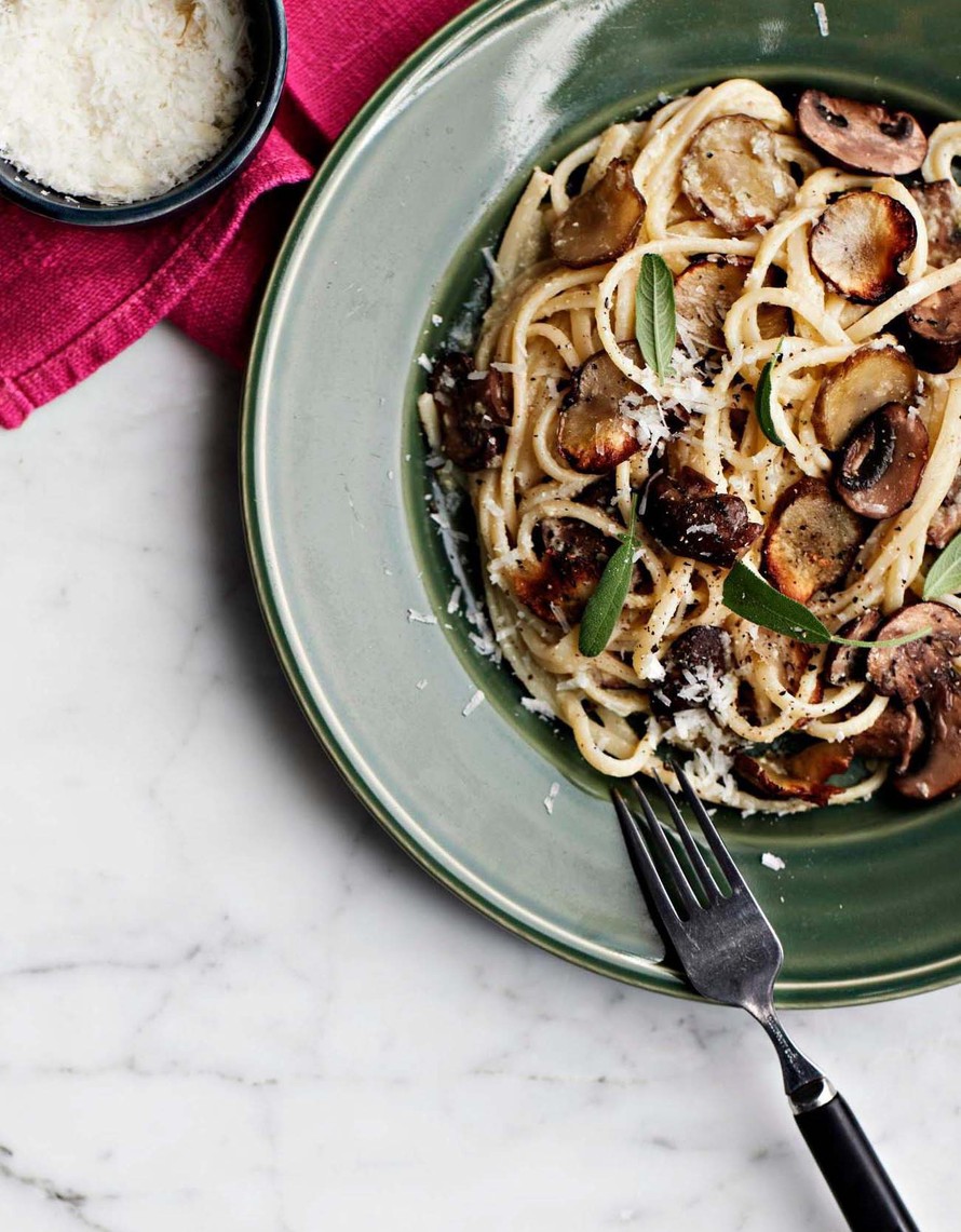 Tässä ohjeessa artisokansydämet soseutetaan hurmaavan maukkaaksi pastakastikkeeksi yhdessä sitruunanmehun, valkosipulin, mausteiden ja öljyn kanssa. Kastikkeen joukkoon revitään vielä tuoretta salviaa. Kastikkeen lisäksi pastaan lisätään paistettuja sieniä tuomaan täyteläistä makua.