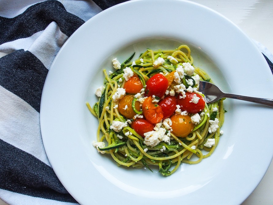 Kesäkurpitsaspagetti avokadosoosilla