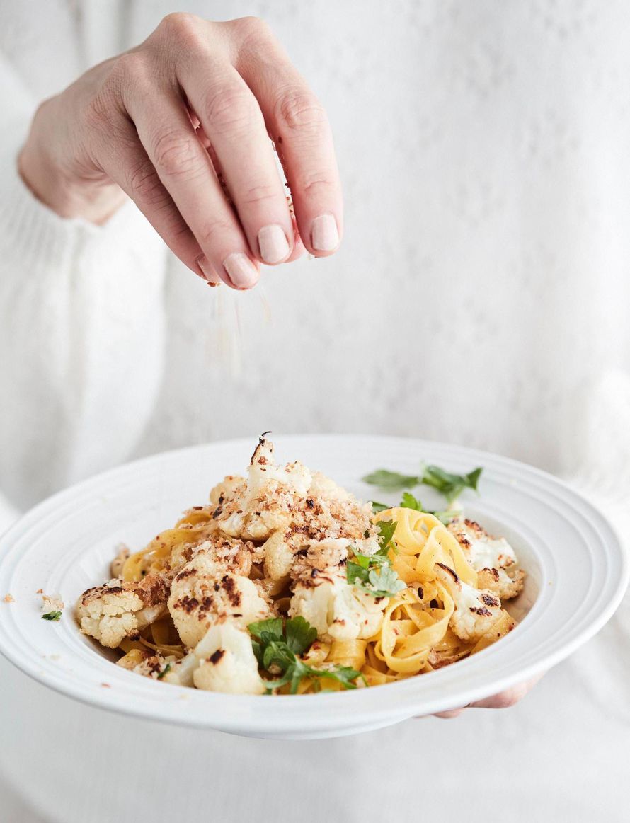 Pangrattato eli köyhän miehen parmesaani tuo ihanaa rapeutta supersimppeliin kukkakaalipastaan.