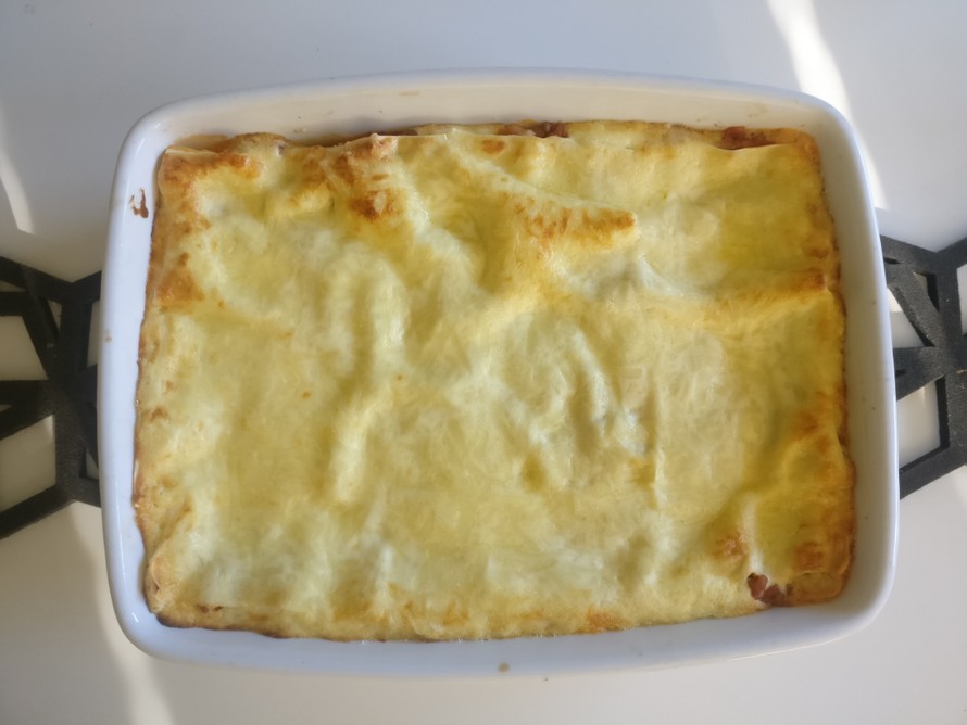 Sopivasti mausteinen vegelasagne, linsseistä, tomaattimurskasta ja ranskankermasta.