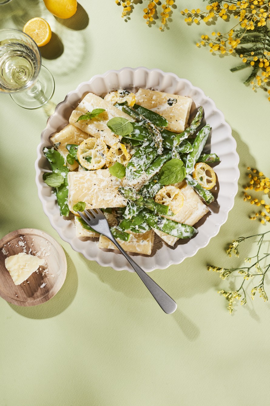 Täyteläinen mascarpone, raikas sitruuna ja vihreät kasvikset tekevät tästä pastasta kevään himotuimman.
