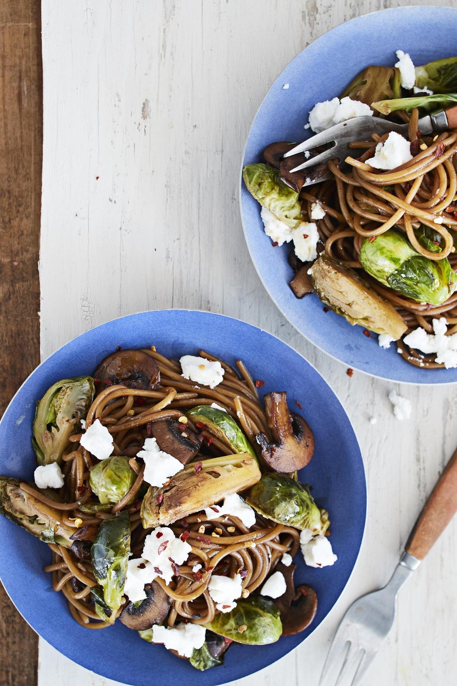 - Jaa pasta-annokset lautasille ja murenna vuohenjuustoa päälle.
