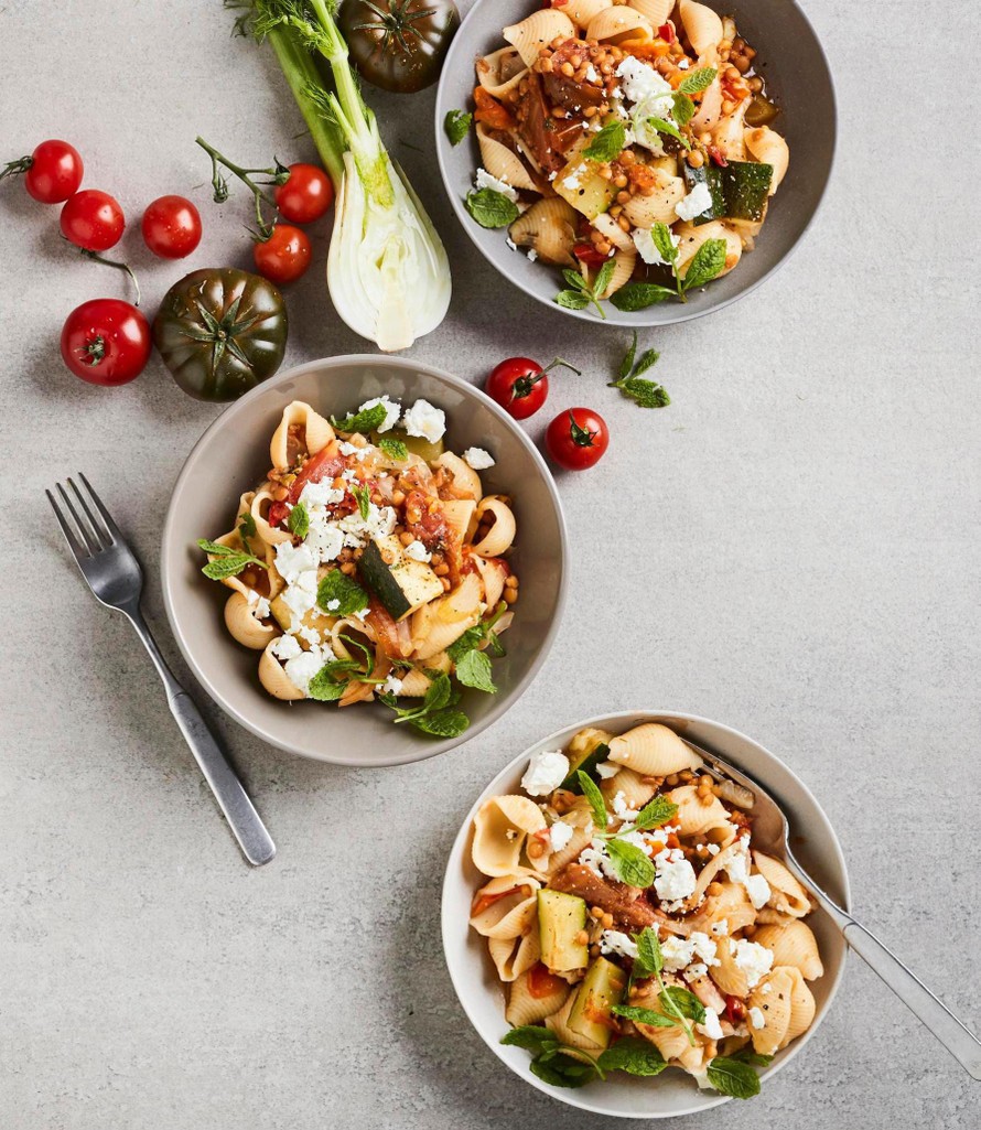 Linsseillä rikastetun kasvispastan maussa ja ulkonäössä riittää ihasteltavaa. Fenkoli tuo kastikkeeseen anismaisen pirskahduksen.