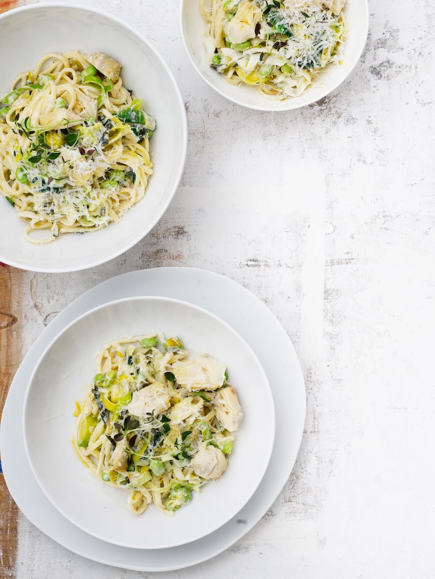 Lisämakua ja suutuntumaa pastaan tuovat artisokansydämet sekä täyteläinen tuorejuusto, jotka sekoitetaan pastan joukkoon vasta valmistuksen loppuvaiheessa.