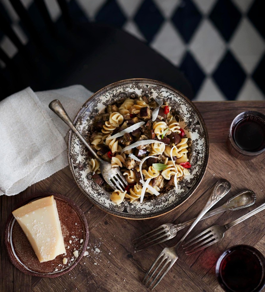 - Keitä pasta pakkauksen ohjeen mukaan suolalla maustetussa vedessä. Valuta ja kääntele marinoituihin munakoisoihin.