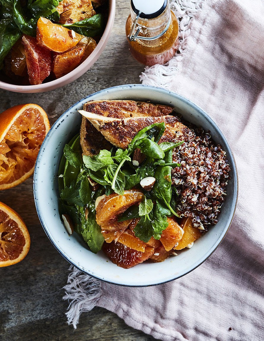 Terveellinen, kaunis ja herkullinen. Sellainen on veriappelsiinin, avokadon ja savutofun rikastama kvinoakulho. Ihanan Lähi-idän vivahteen ruokaan tuo juustokuminan ja harissan maustama kastike. Tämä herkku sopii myös vegaaniseen ruokavalioon.