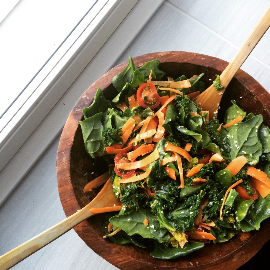 Vegaanikuukautta viettävä ystävä oli tulossa illaksi kylään (katsomaan Hottisten starttia ja juomaan viiniä). Oli selvää, että haluaisin tehdä lehtikaalipohjaista salaattia, mutta kastikkeen valinta mietitytti. Oma perussalaatinkastikkeeni kun koostuu dijonsinapista, oliiviöljystä, sitruunamehusta ja hunajasta. Ja viimeksi mainittu ei vegaaneille uppoa, kun kyseessä on kuitenkin eläinperäinen tuote.