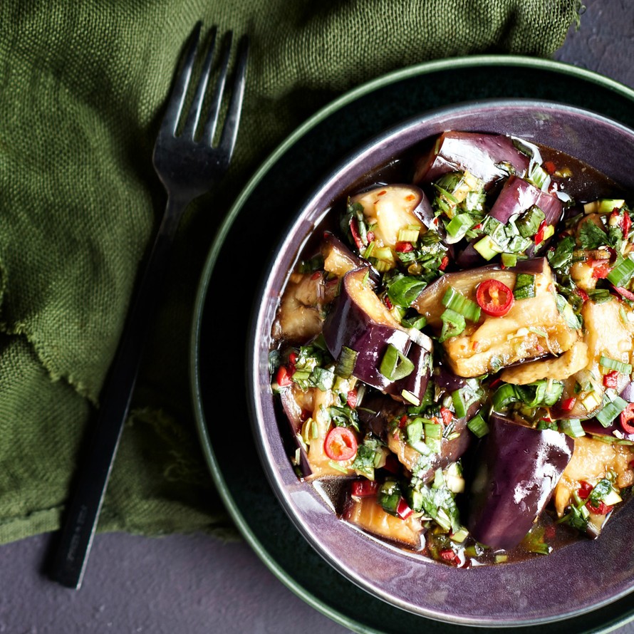 Höyrytys on mainio vaihtoehto munakoison kypsennykseen. Maukkaalla aasialaishenkisellä kastikkeella viimeistelty munakoisosalaatti sopii esimerkiksi grilliruokien lisukkeeksi.