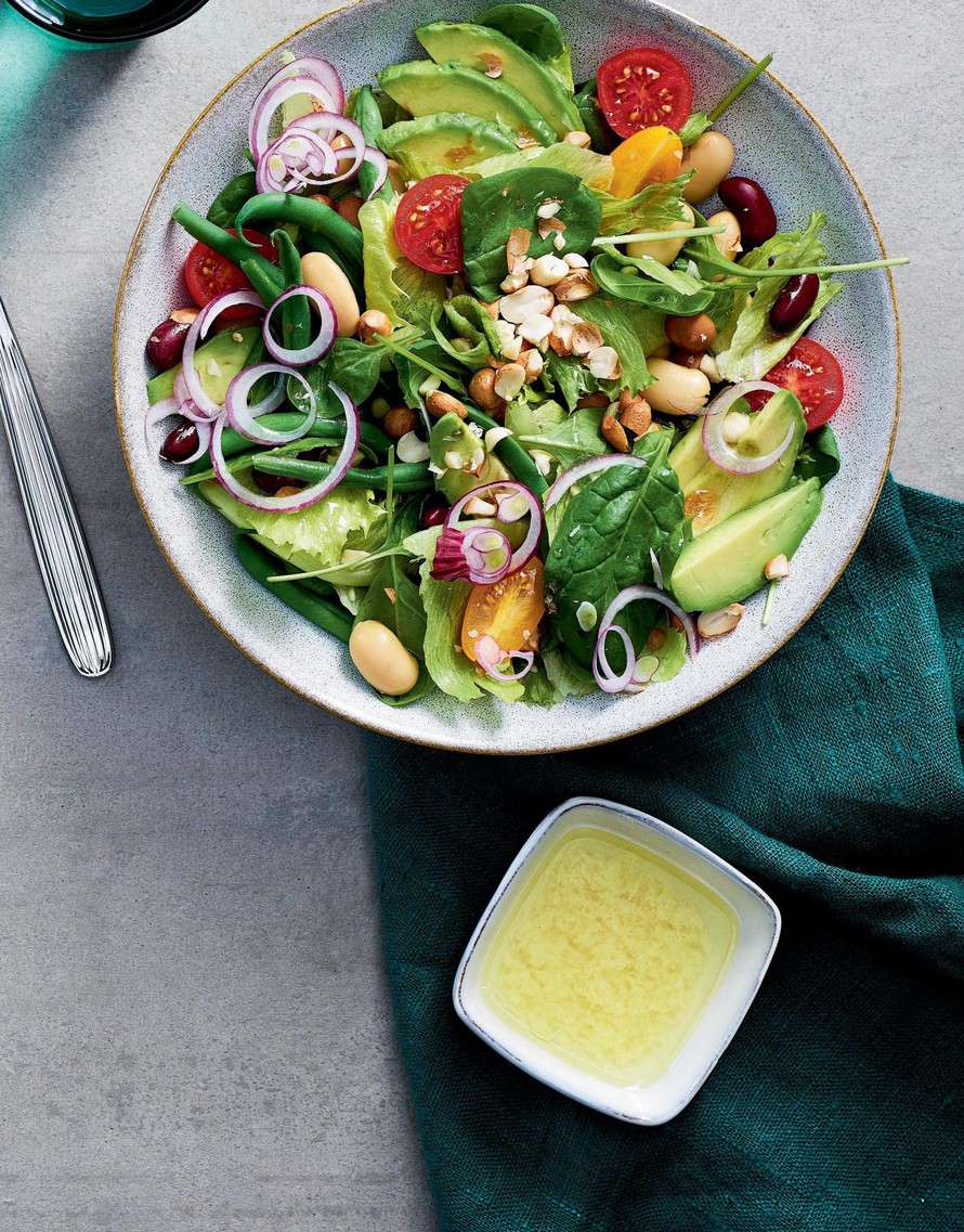 Vähäkaloriset mutta proteiinipitoiset pavut toimivat salaatissa hyvin yhteen runsaasti kasvirasvaa sisältävien avokadon ja pähkinöiden kanssa.