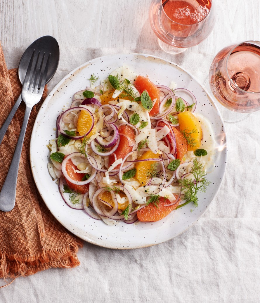 Tämä salaatti on saanut inspiraationsa Sisiliassa kasvavista appelsiineista, fenkolista ja punasipulista.