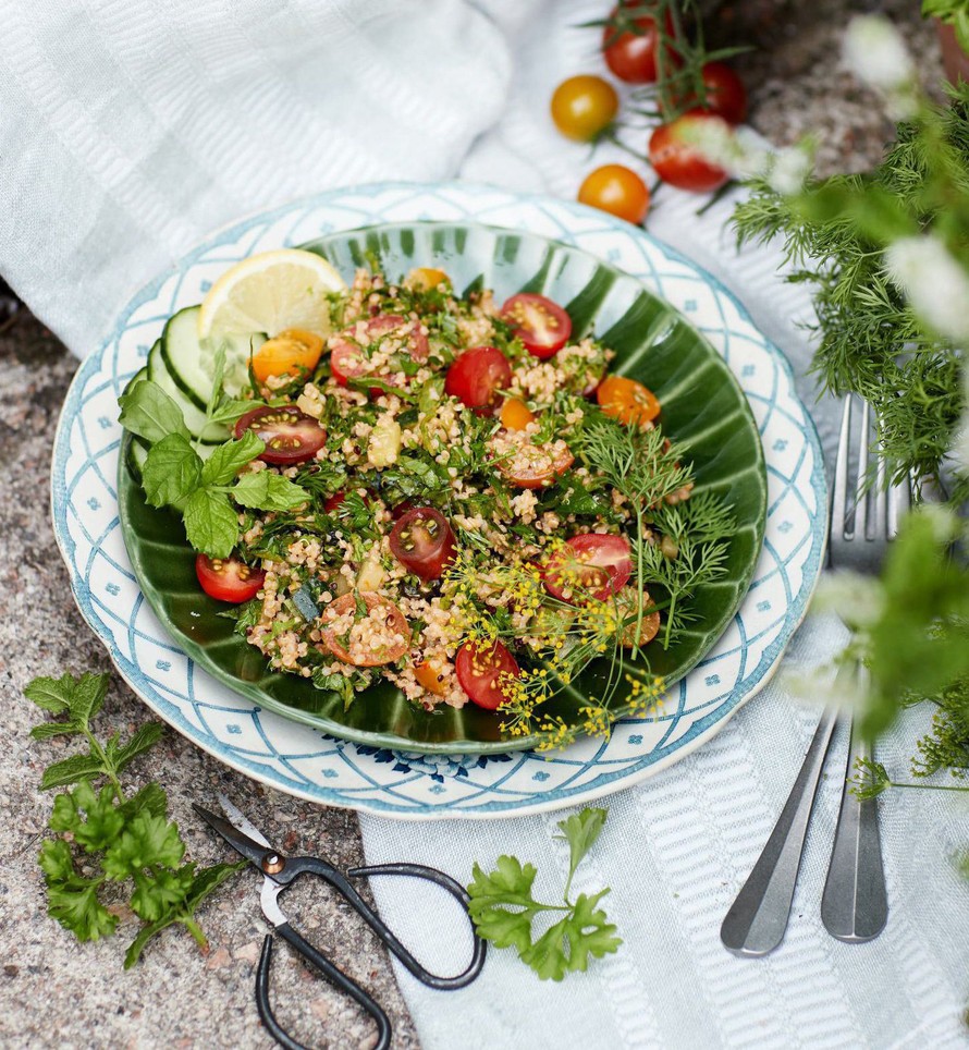 Tabboulleh on raikkaan yrttinen mutta ruokaisa salaatti, joka tehdään perinteisesti kuskusista. Terveellisempi ja proteiinipitoisempi versio syntyy käyttämällä viljana kvinoaa.