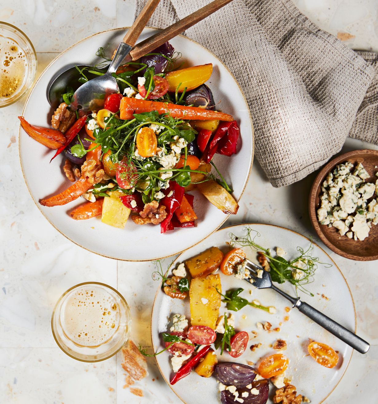 Uunivihannessalaatti ja homejuustoa