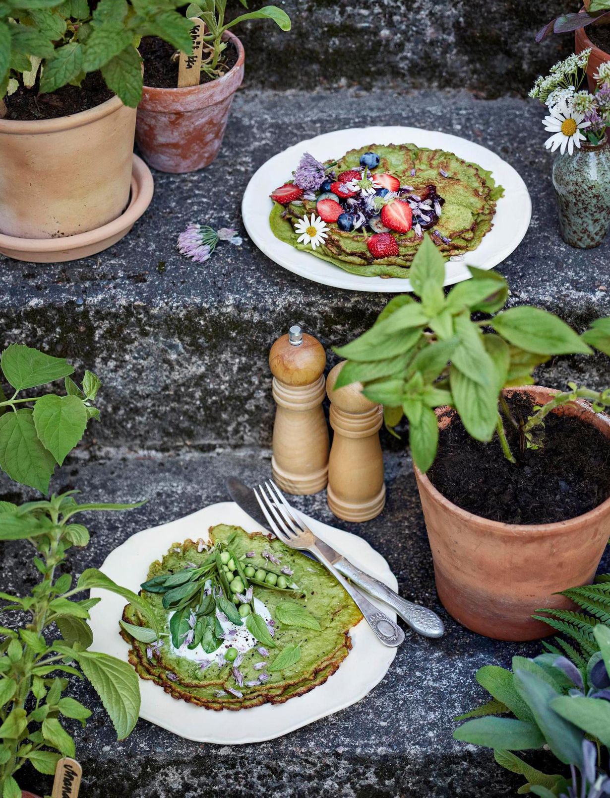 Paista taikinasta lettuja voissa. (Jos haluat lettujen jäävän kauniin vihreiksi, paista ne vain toiselta puoleltaan.)