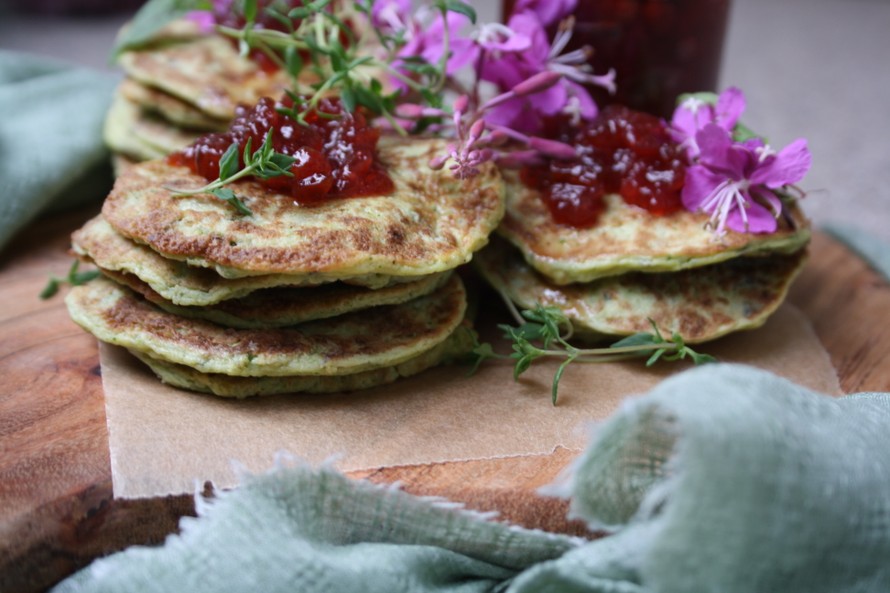 Pilko kesäkurpitsat isoiksi paloiksi, laita kesäkurpitsat ja kananmunat tehosekoittimeen, soseuta tasaiseksi. Kaada kesäkurpitsaseos kulhoon.