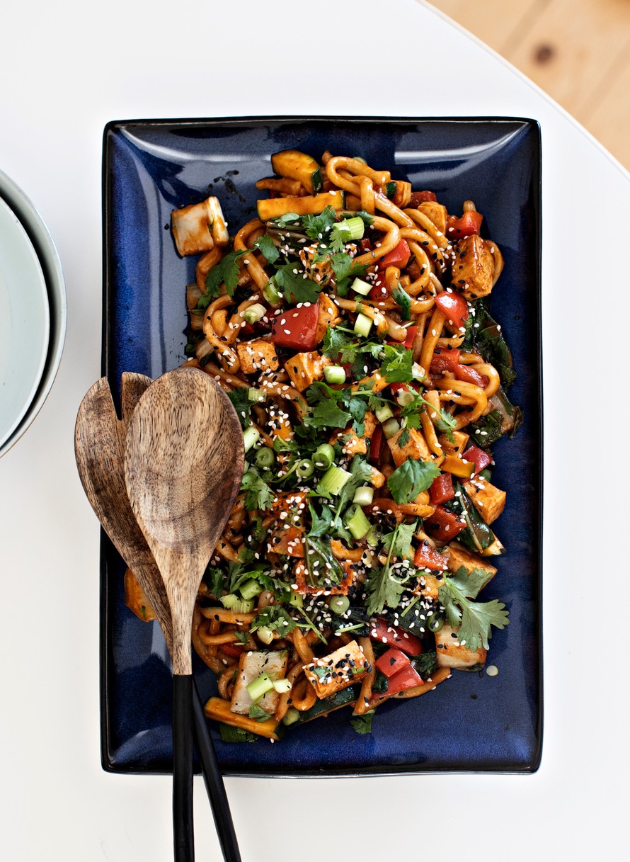 Paistetuissa ja tulisesti maustetuissa nuudeleissa on selittämätöntä viehätystä. Näitä voisi syödä vaikka joka päivä. Kastike yhdistelee itäisen Aasian tyyppillisimpiä maustekastikkeita.