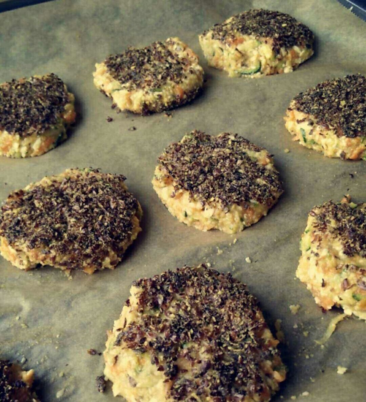 Muotoile taikinasta pihvejä ja "dippaa" pihvi lautasella olevaan pellavarouheeseen niin, että pinta saa kauniin kuorrutuksen.