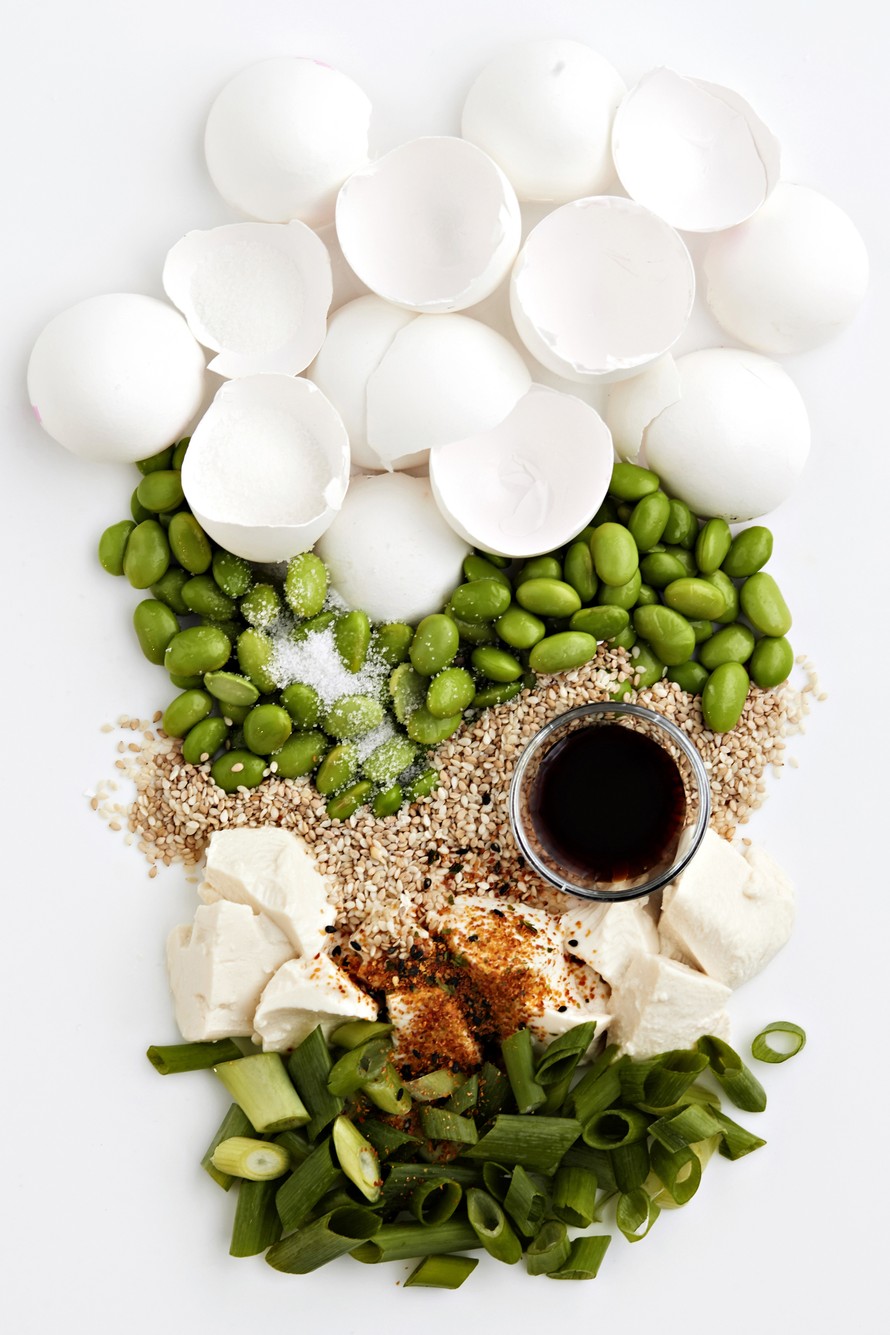 Munakas muuttuu uudenmakuiseksi höysteitä ja mausteita vaihtamalla. Edamame-pavuilla, pehmeällä tofulla ja kevätsipulilla rikastettu munakas vie ajatukset Japaniin.