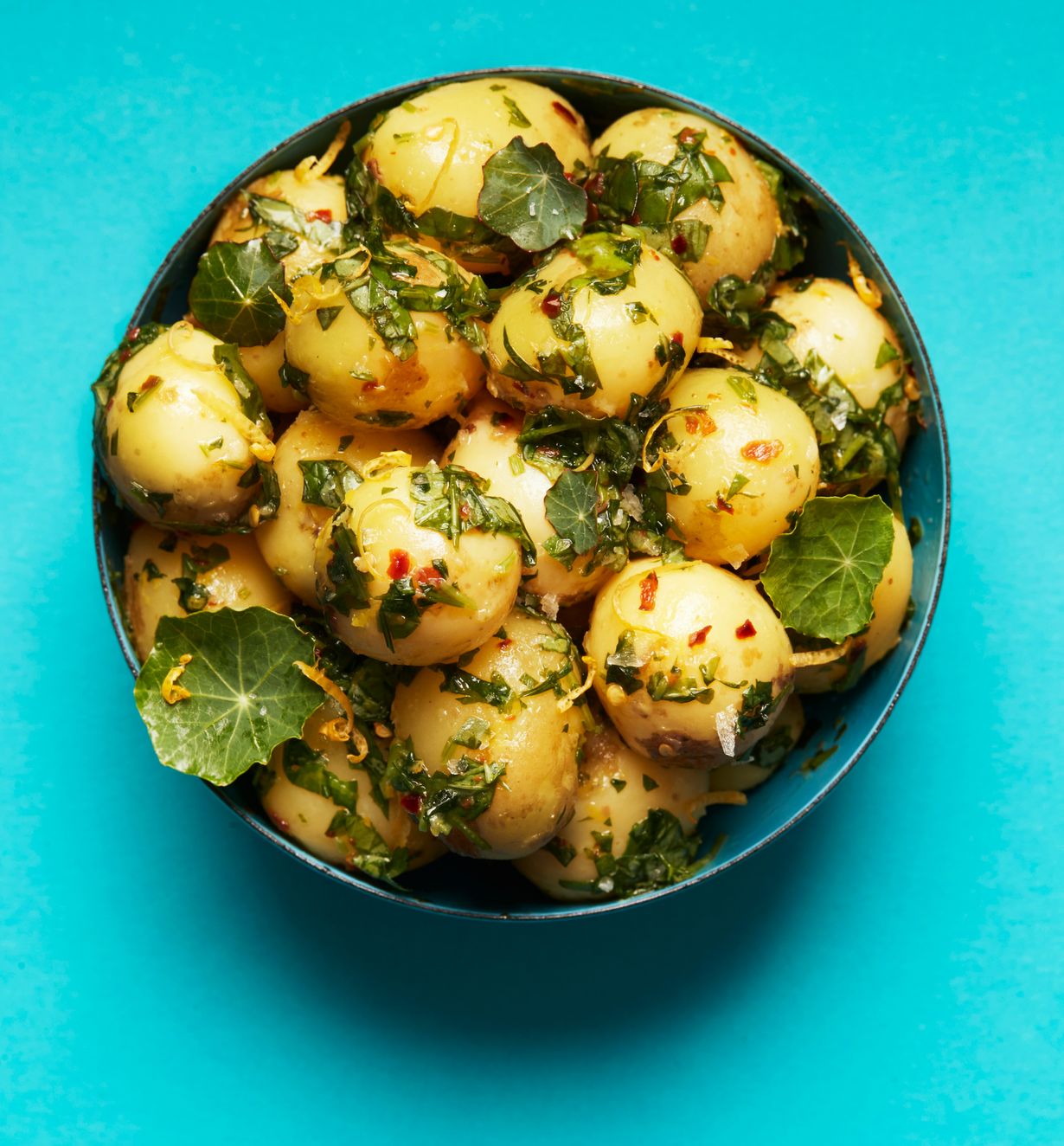 Sitruunaisessa yrttiöljyssä kylvetetyt perunat sopivat mihin tahansa kesäruokapöytään. Älä skippaan sitruunan kuoren raastamista, se tuo uskomattoman paljon makua!
