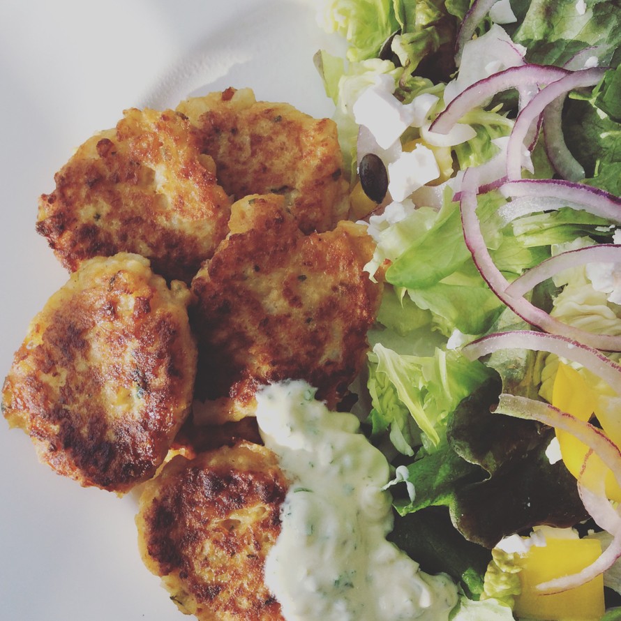 - Lämmitä pannu, lisää voita ja öljyä. Tiputa massaa sopivan kokoisina lusikallisina suoraan pannulle. Paista kunnolla rapeiksi molemmin puolin.