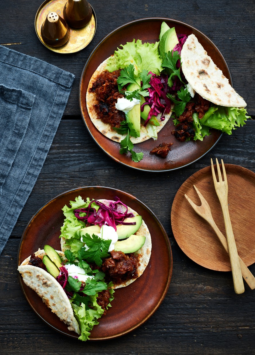 Näissä tacoissa piilee kaksi mehevää makuyllätystä: muhkean makuinen teriyakiselleri ja rouskuva jalapeno-kaalisalaatti.