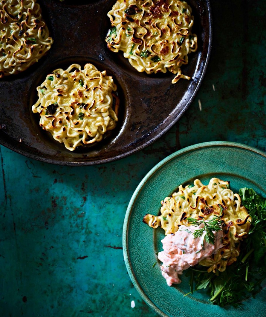 Söpöt nuudelikakut sopivat monenlaisiin pöytiin! Tarjoa tulisen kastikkeen lisukkeena tai skandinaavisen savulohitahnan kera.