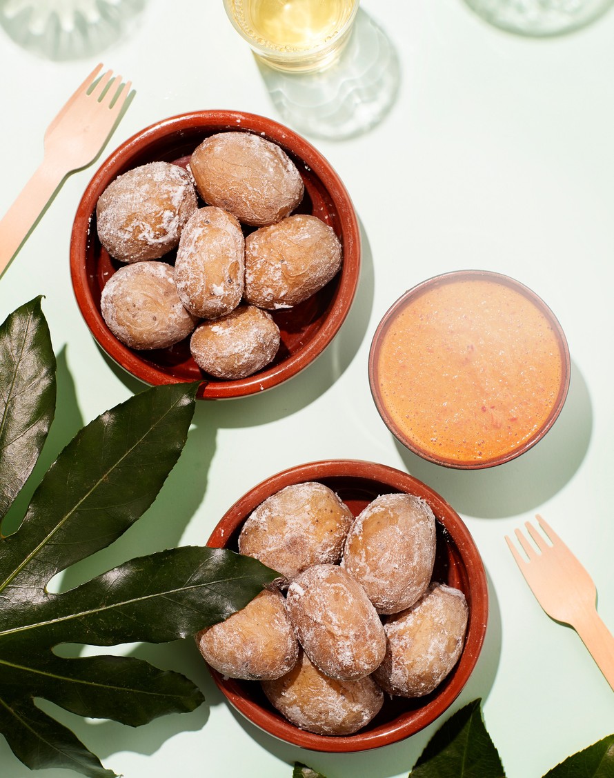 Tarjoa ryppyperunat mojo rojo -kastikkeen kanssa.
