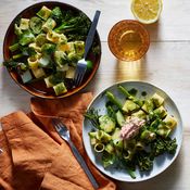 Laita pasteijat leivinpaperin päälle uunipellille ja sivele ne kasvikermalla. Paista 225asteisen uunin keskitasolla 14–15 minuuttia.
