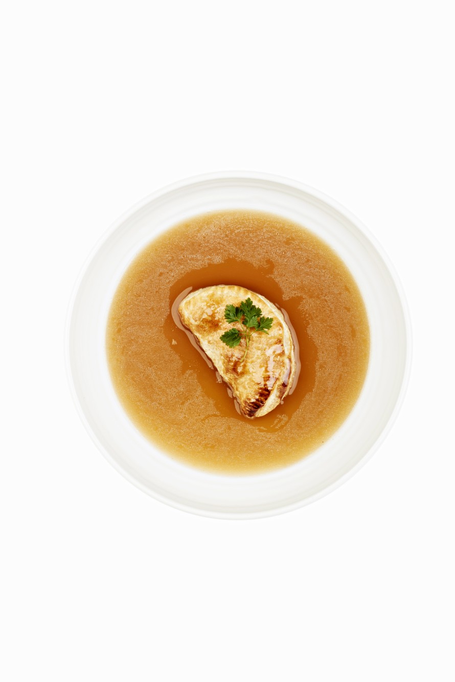 Kuumenna liemi. Lisää suola ja tilkka sherryä. Laita lautasille pasteija ja kaada lientä ympärille.