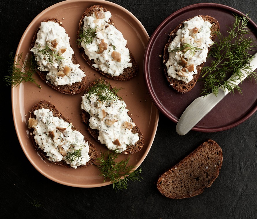 Sienisalaatti levittyy sulavasti ruisleivän päälle raikkaaksi ja kotimaisia makuja kunnioittavaksi iltapalaksi. Suolasienien sopiva liotusaika selviää vain maistamalla.