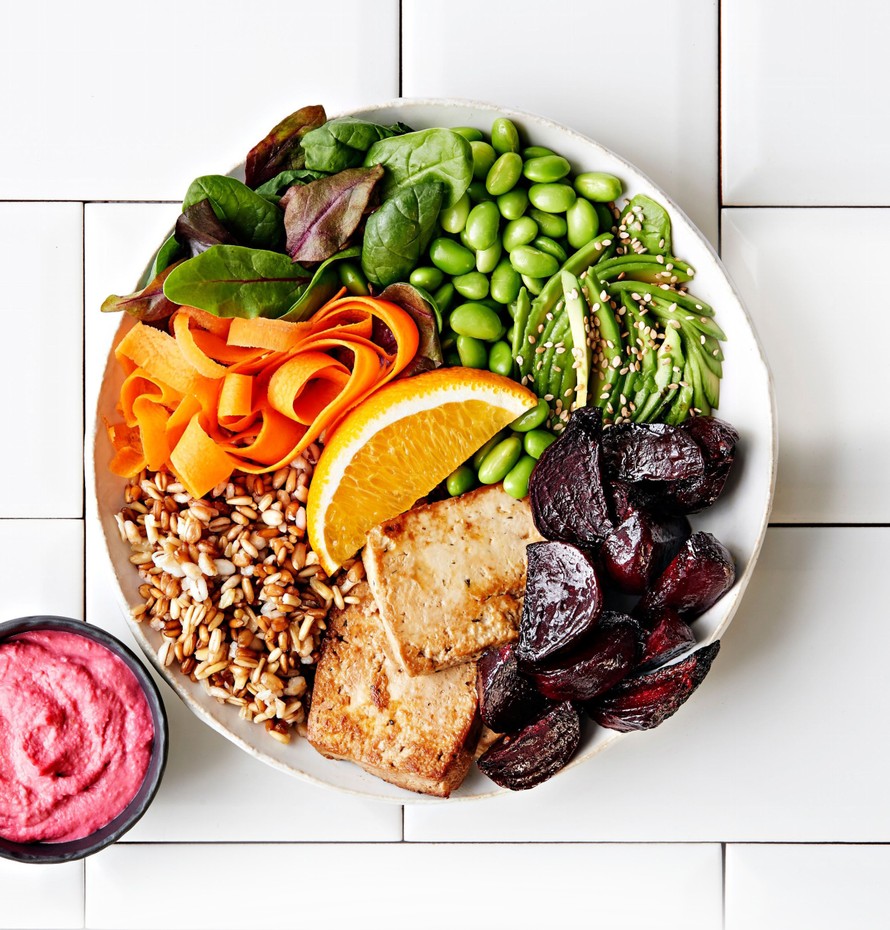 Kulhoruoka on kaunis, maistuva ja monipuolinen ateria. Proteiinia saat tofusta, täysjyvästä ja edamamepavuista.