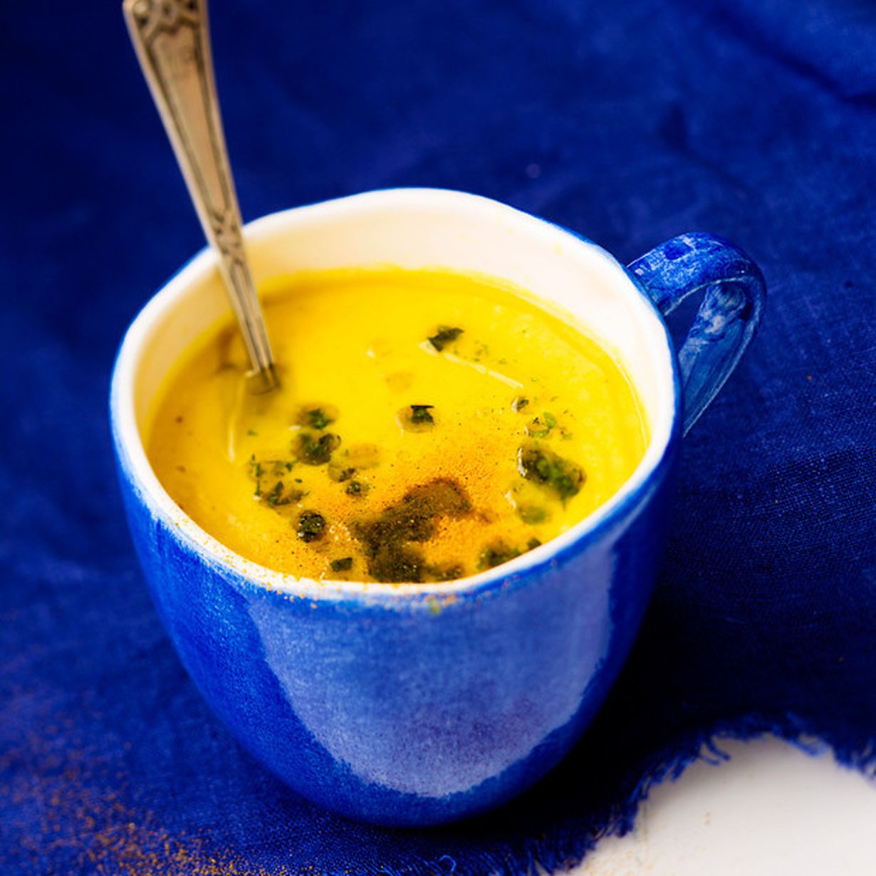 - Lisää kerma, koristele yrttiöljyllä tai siemenillä ja tarjoa keitto kauraleivän (tarvittaessa gluteenittoman) kanssa. Yrttiöljy syntyy, kun silppuat basilikaa, lehtipersiljaa ja timjamia oliivi- tai rypsiöljyyn.