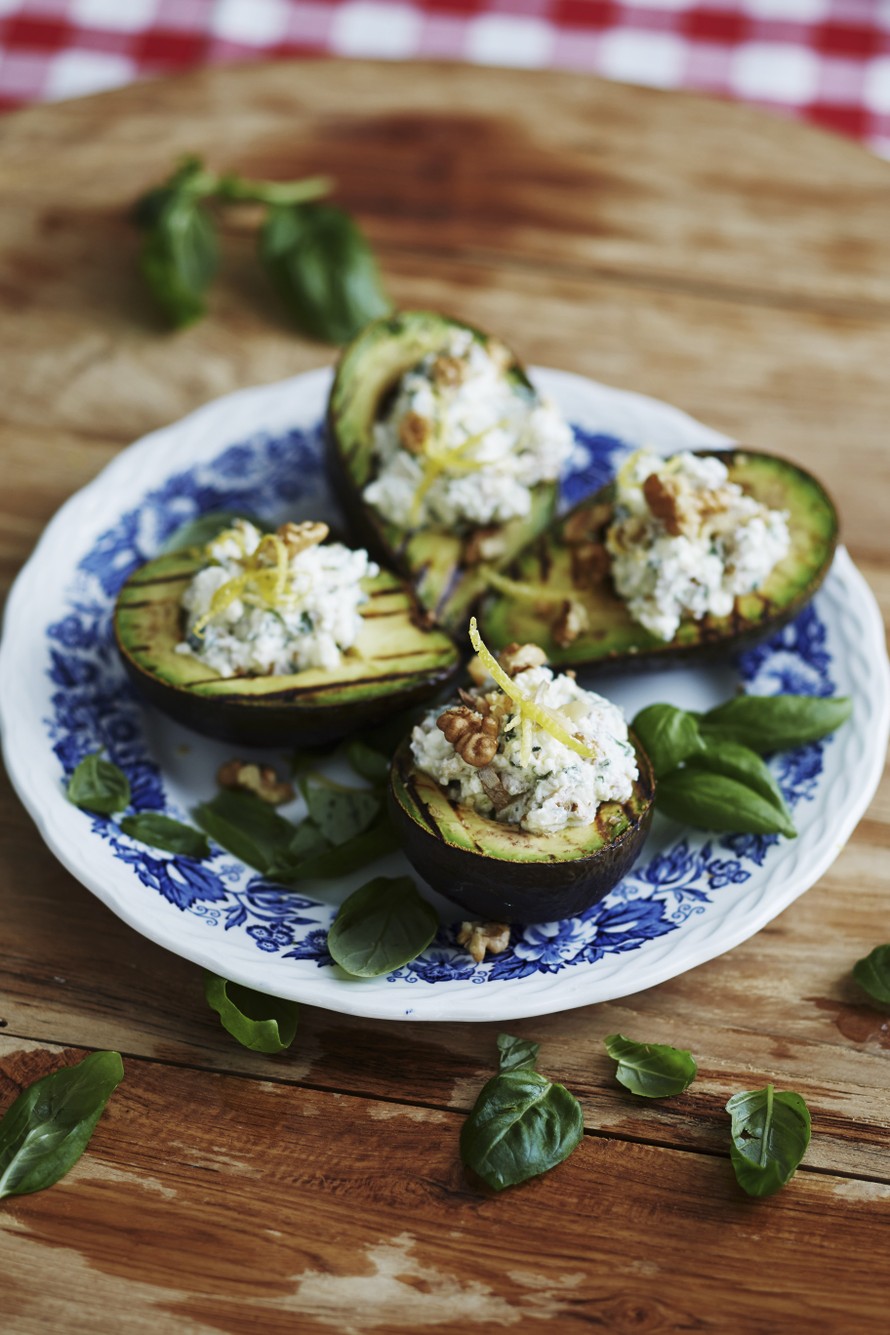 Grillatut avokadot ja yrtti-pähkinäfeta