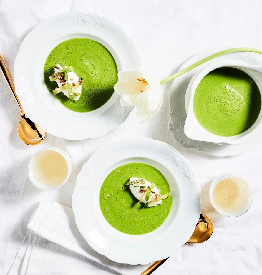 Kiivi tuo keittoon hapokkuutta sekä makeutta ja pakasteherneet sekä smetananokare varmistavat, että keitosta saa myös proteiinia, jotta nälkä pysyy loitolla. Valkosipuli ja sitruuna antavat keitolle makua, ja halutessaan nesteenä voi käyttää kylmää kasvislientä veden sijaan.