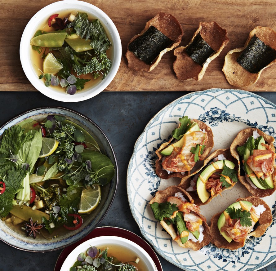 Rapean ja pehmeän täydellinen yhdistelmä löytää tarkoituksensa rouskuvissa sushitacoissa, joiden makumaailma yhdistää Aasian ja Meksikon.