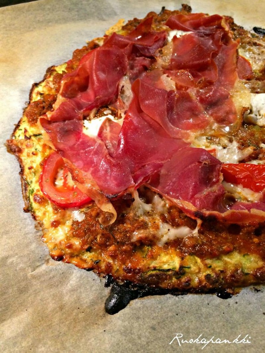 Kesäkurpitsapizza taivaallisella tomaattikastikkeella