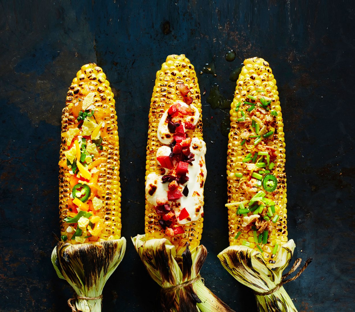 - Ota maissit foliosta ja viimeistele ne ripottelemalla pintaan sipulirouhetta.
