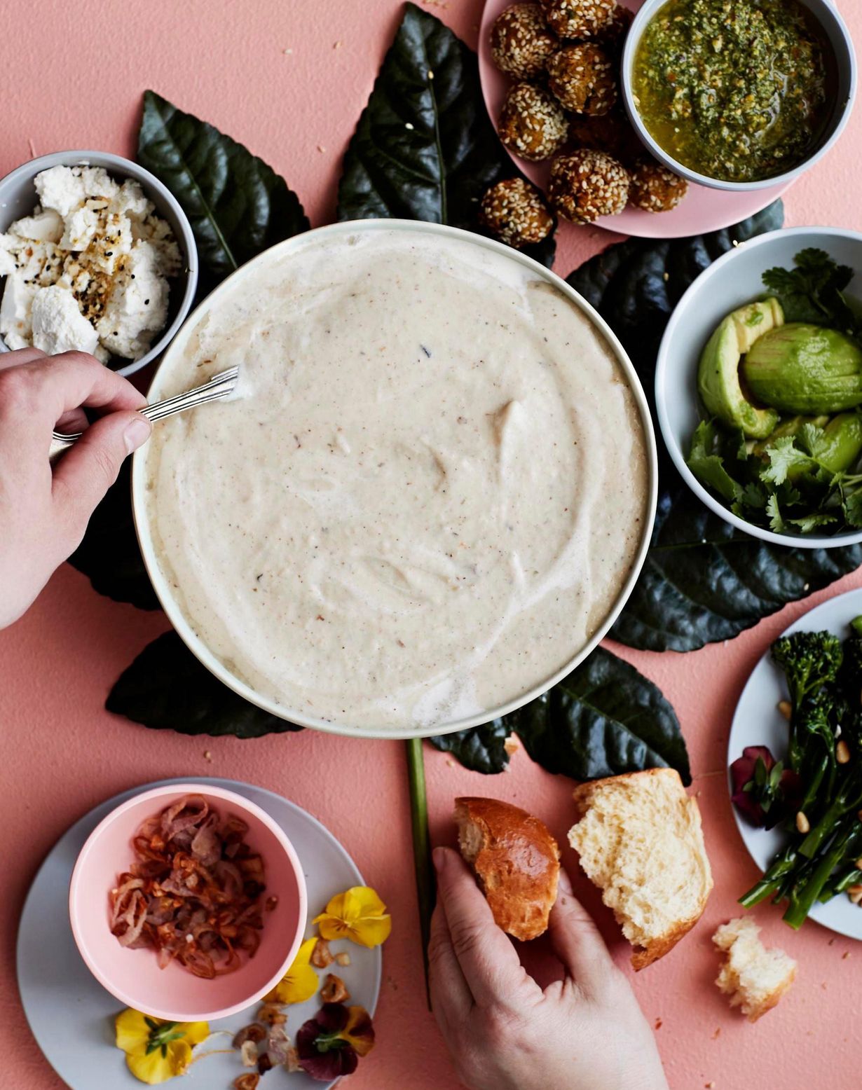 Ruokajuhla syntyy näinkin: nosta pöytään kattilallinen kukkakaalikeittoa ja ihanat höysteet, joista jokainen saa valita suosikkinsa.