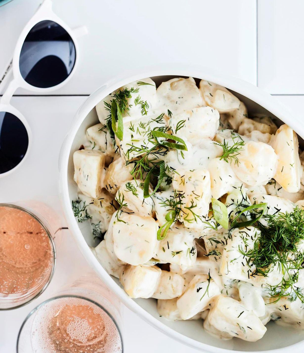 Ihanasti makeaa, hapokasta ja rasvaista yhdistelevä vappusalaatti viimeistellään itsetehdyllä tillisuolalla, joka säilyy tiiviissä purkissa todella pitkään.