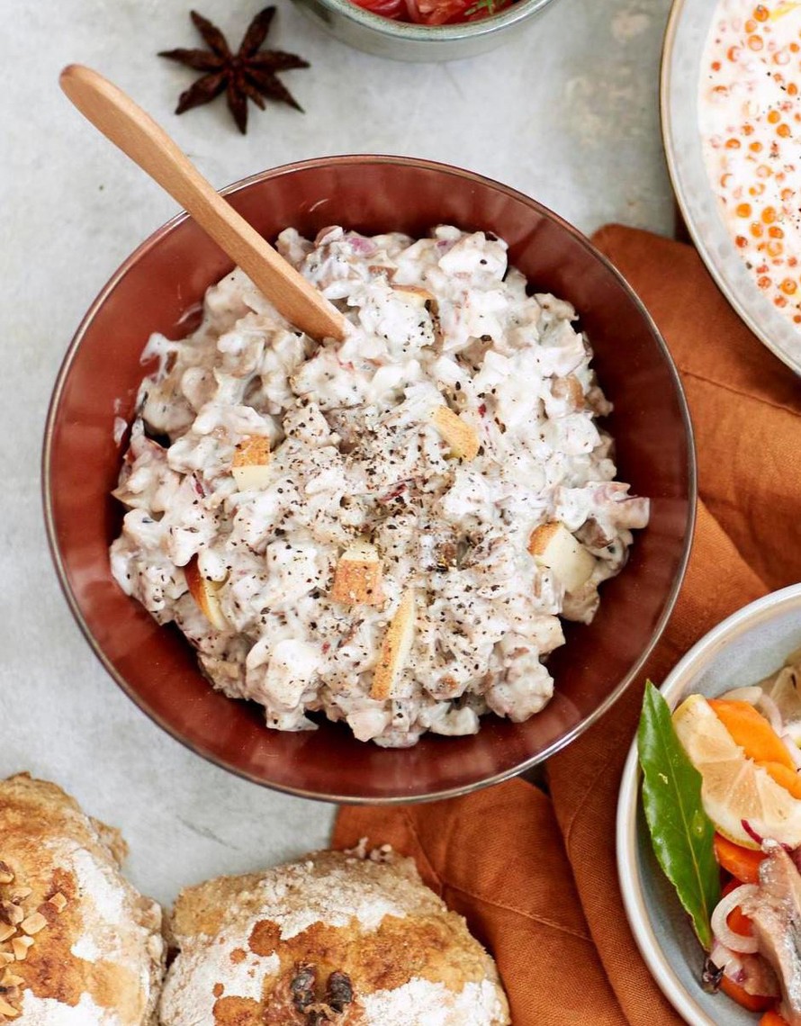Suolasienisalaatti valmistuu muutamassa minuutissa. Jos et itse säilönyt syksyn sieniä, voit ostaa säilötyt sienet kaupan hedelmä- ja vihannesosastolta.