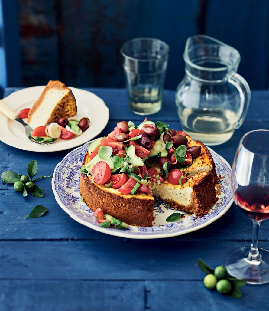 Suolainen juustokakku! Tässä ricotalta ja fetajuustolta maistuvassa paketissa on kaikki mitä tarvitset herkulliseen iltaan. Lisää piirakan päälle salaatti, niin erillisiä astioita ei tarvita.