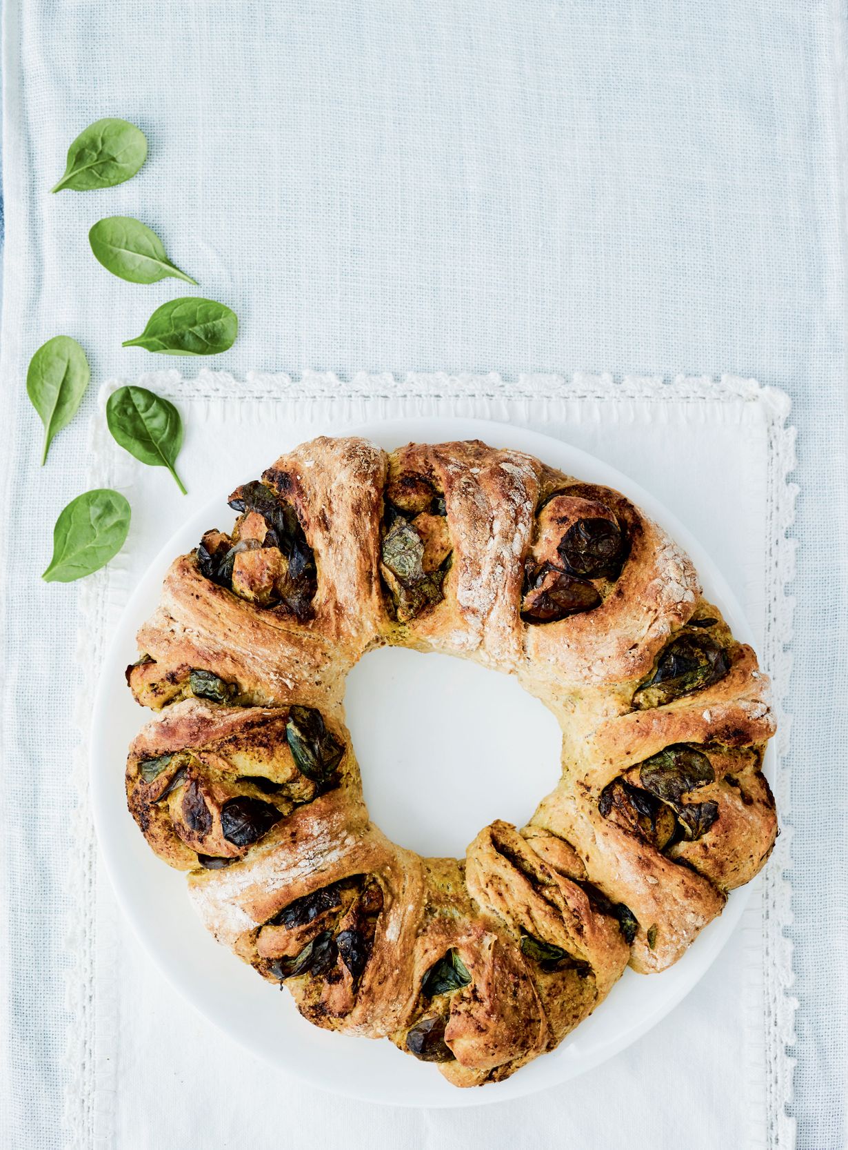 Mehevällä pestolla ja pinaatilla täytetty kranssi ei levitettä kaipaa. Ota mukaan eväsretkelle tai nosta juhlien noutopöytään.