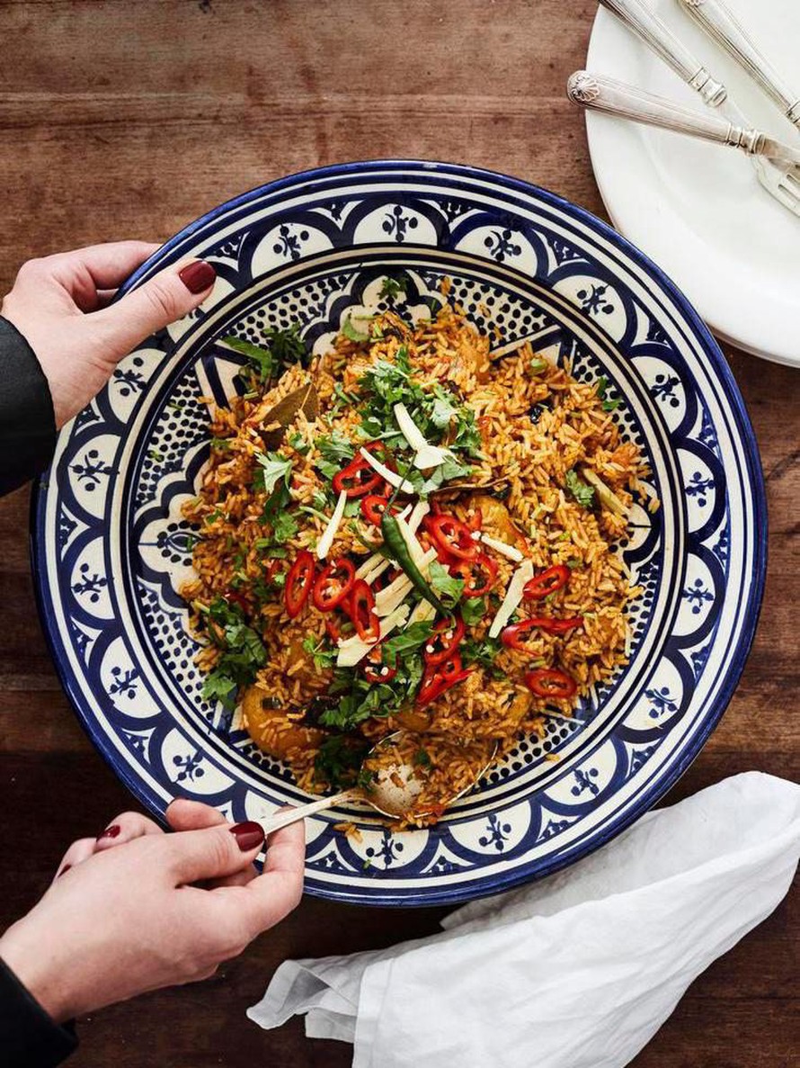 Paistettuun, mausteiseen riisiin perustuva biryani riittää isollekin seurueelle. Tämä pakistanilainen biryani on maultaan erittäin tulinen ja samalla superherkullinen.