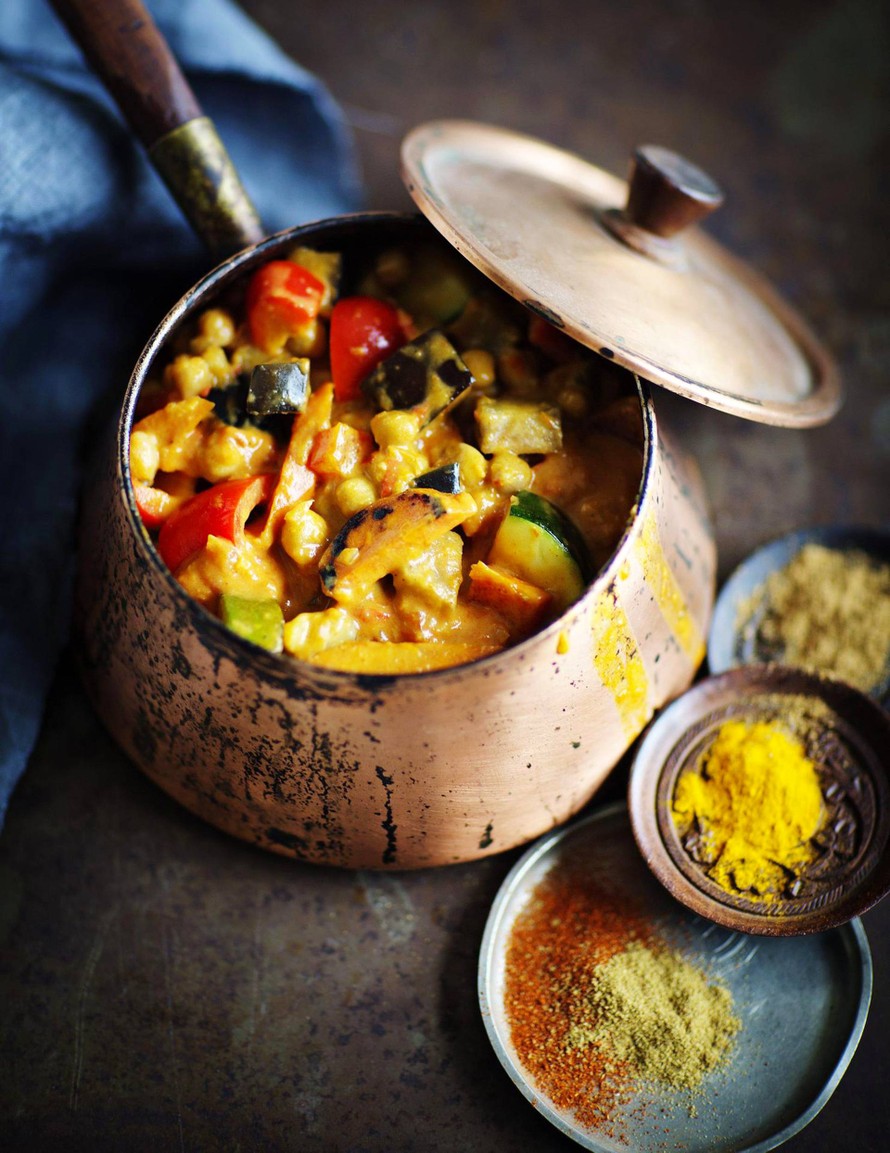 Huolellisesti valmistettu currytahna on tämän intialaisen ruuan ydin. Lämmittävään curryyn uppoaa kikherneiden lisäksi yllin kyllin kasviksia.